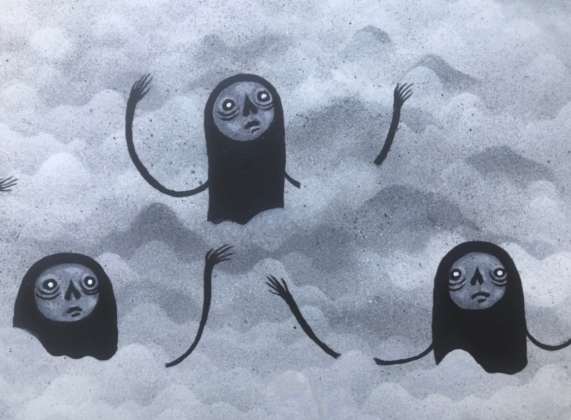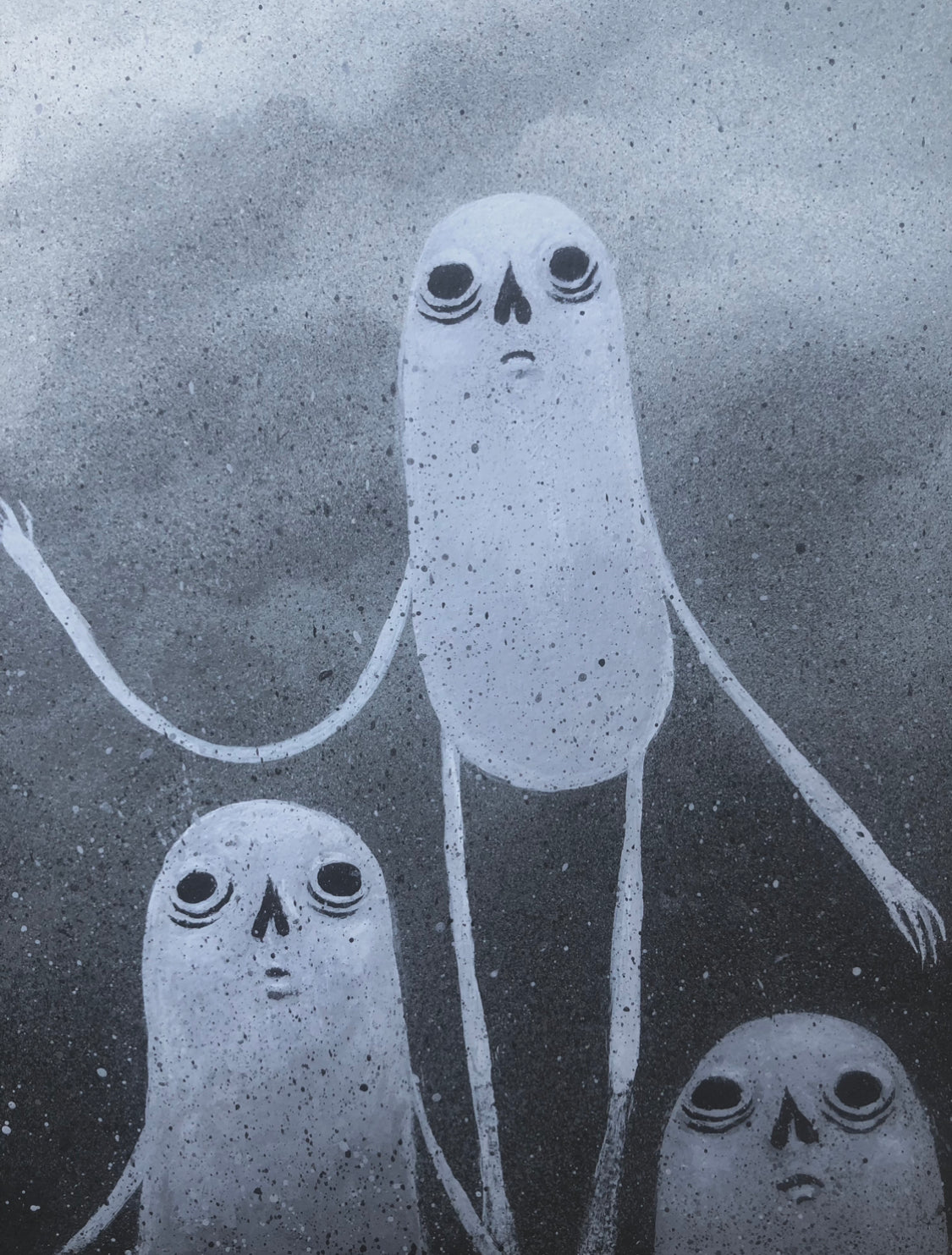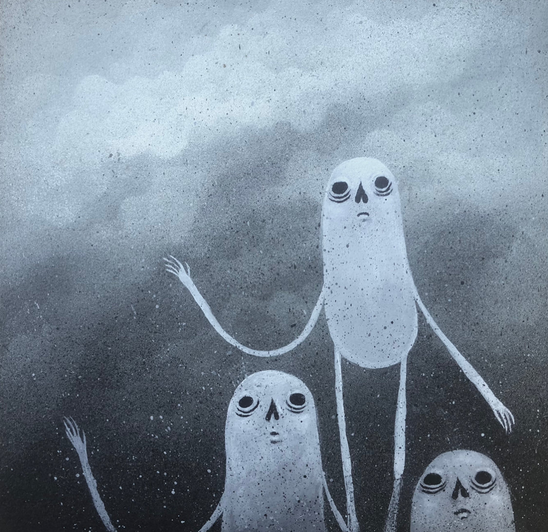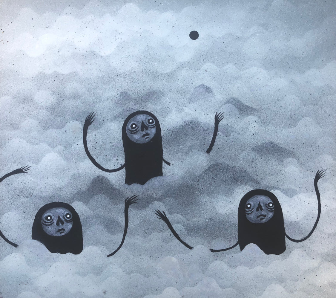 PARSKID “Dark Drifters” Spray paint & acrylic on heavy wood block 11” x 10” .75” deep 2017/2025